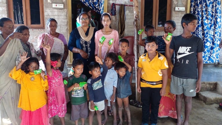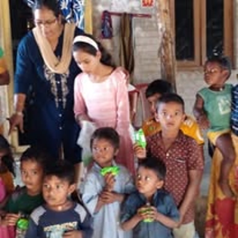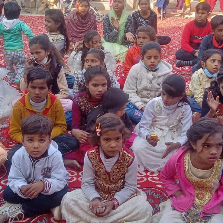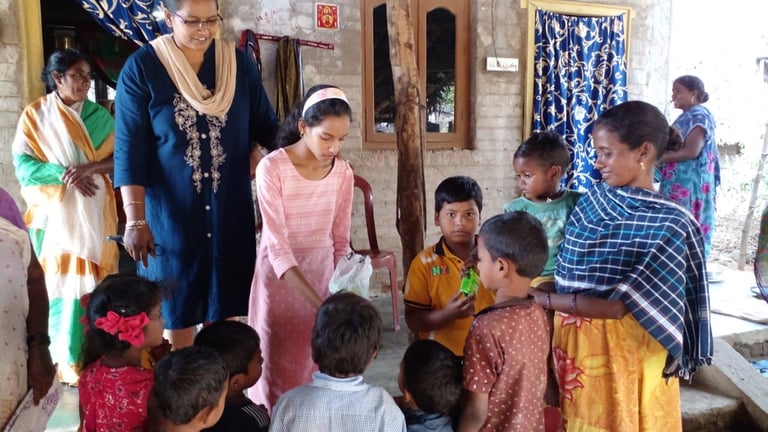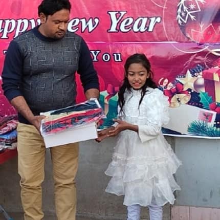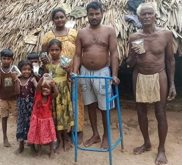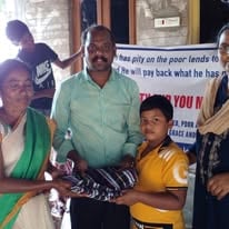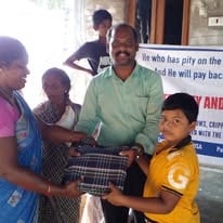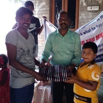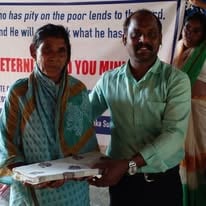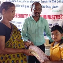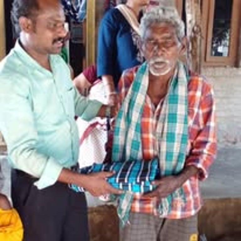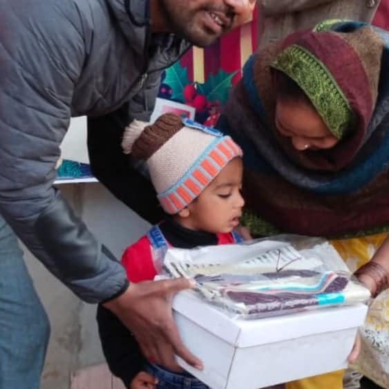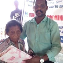 Eternity and You India giving blankets and food to an elderly village.